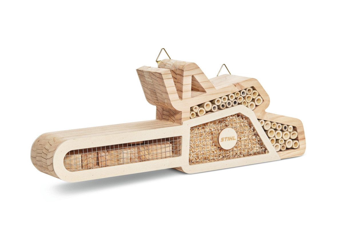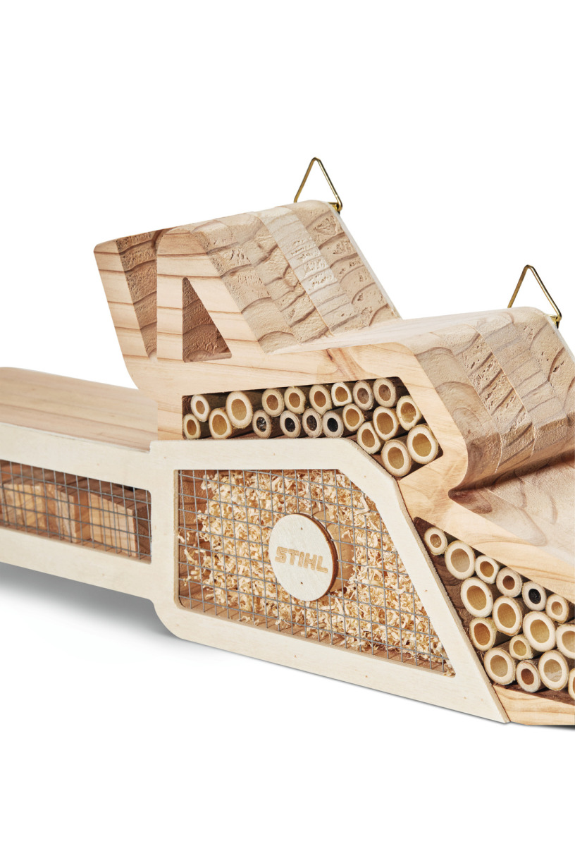 Éveillez la vie dans votre jardin avec l'hôtel à insectes ICON de STIHL, au design unique rappelant une tronçonneuse. Parfait pour les passionnés d'animaux et de biodiversité, il offre à divers insectes des abris sûrs, fabriqués à partir de rondins percés certifiés, de bambou et de laine de bois. Cette combinaison judicieuse garantit un habitat adapté à chaque espèce présente dans votre espace vert. Les dimensions compactes d'environ 40 x 15 x 7 cm s'intègrent facilement partout dans le jardin, pour un geste concret en faveur de la nature où que vous soyez.